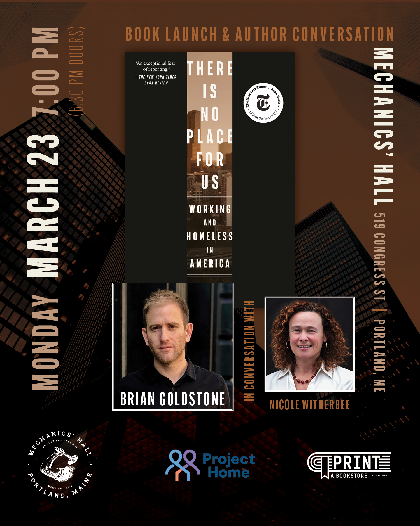 Please join Project Home, PRINT: A Bookstore & Mechanics’ Hall for a crucial discussion with journalist and author Brian Goldstone for the paperback release of his latest book, There Is No Place for Us: Working and Homeless in America. Goldstone will be in conversation with Nicole Witherbee, President & CEO of the John T. Gorman Foundation
